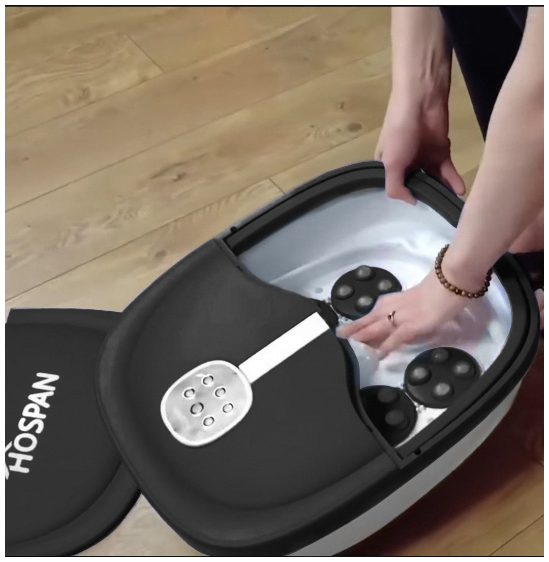 This foot bath is equipped with 6 groups of 3D Tai Chi massage balls which automatically massage the acupuncture points on the soles to relieve foot pressure and improve blood circulation.